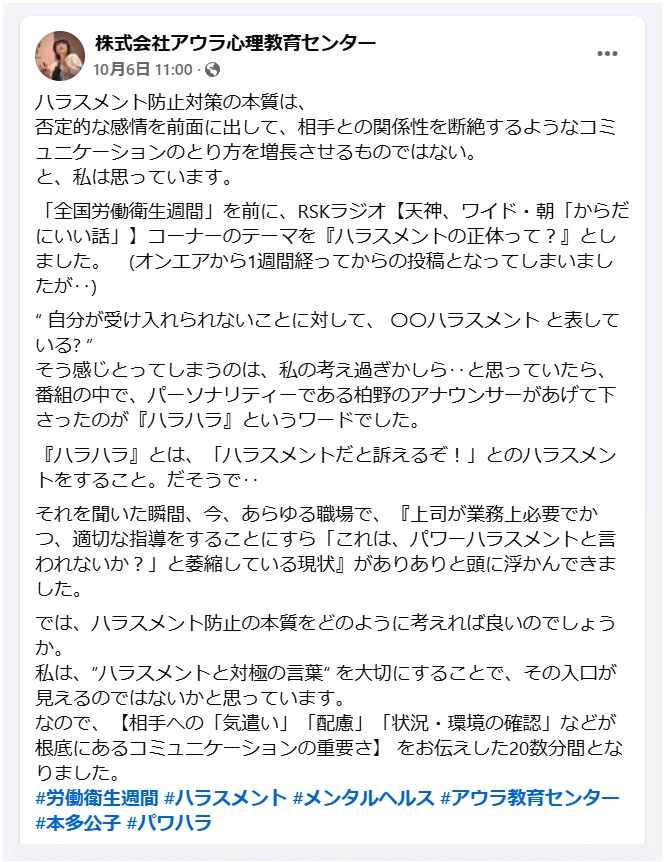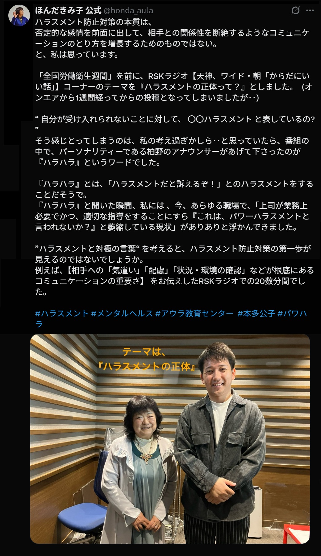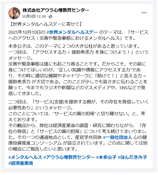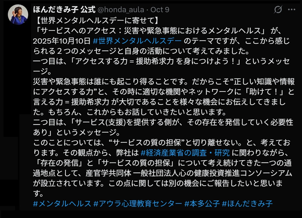 臨床心理士のほんだきみこ(アウラ心理教育センター)がお伝えする